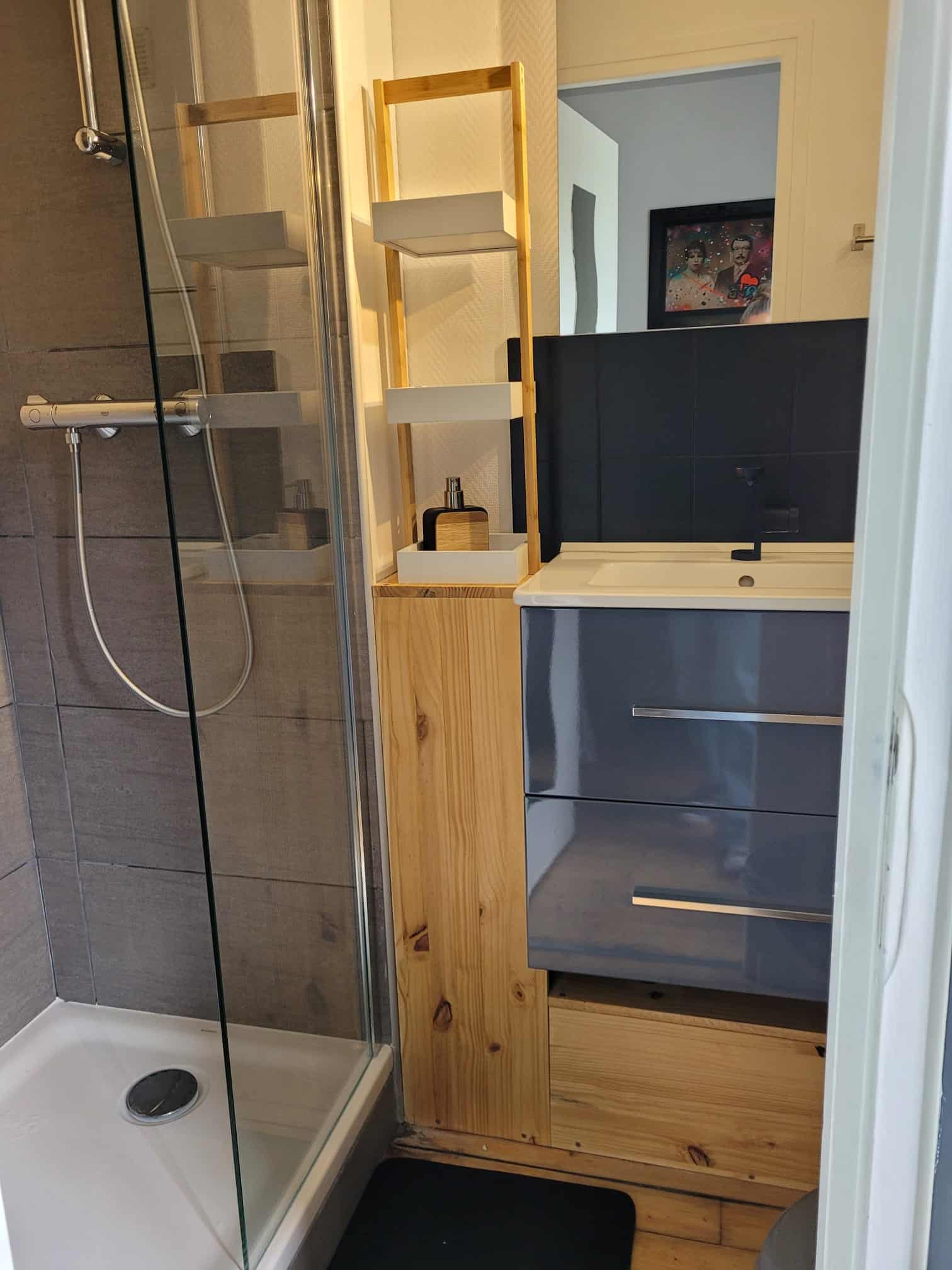 - Salle de bain avec douche, linge fourni (draps, serviettes, torchons)